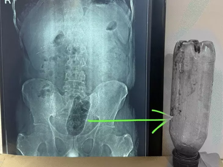 साकेत कालोनी में रहने वाला 38 सालका युवक शादीशुदा है। उसे असहनीय दर्द के चलते नवदीप हॉस्पिटल में मंगलवार को भर्ती कराया गया। डॉक्टरों ने तुरंत युवक का एक्सरे कराया। देखा कि मल द्वार के पास एक बोतल फंसी है।हास्पिटल के निदेशक वरिष्ठ सर्जन डॉ. सुनील शर्मा ने बताया कि युवक को तत्काल इमरजेंसी में भर्ती कराया गया ।
